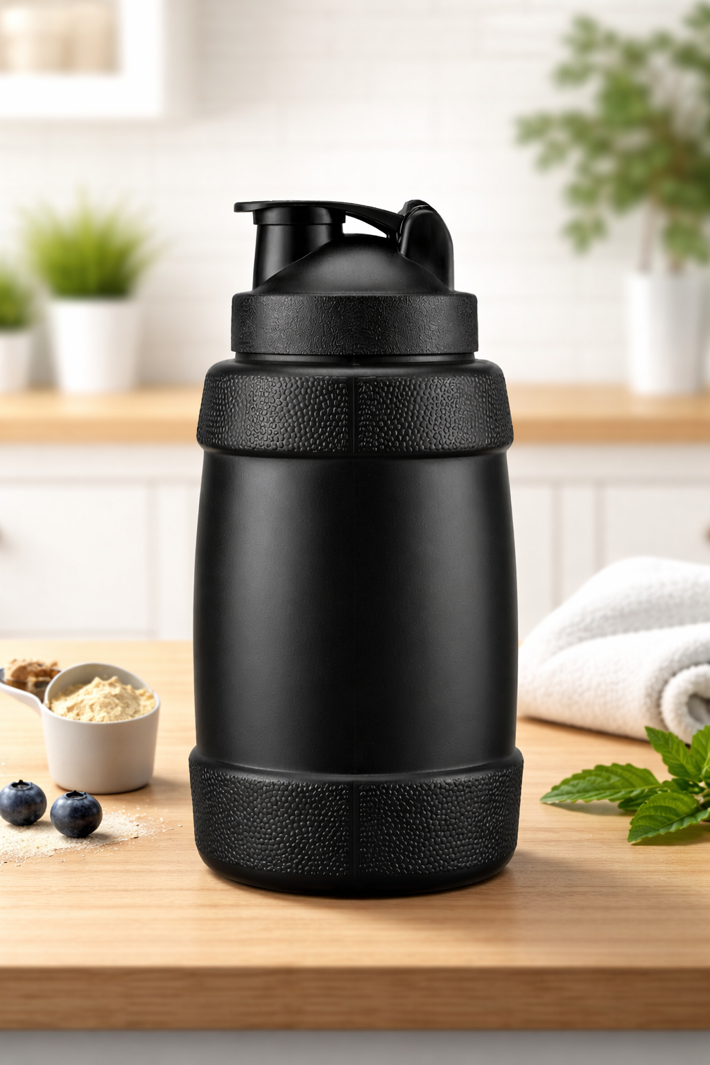 Its large 1.5L capacity allows you to carry enough water or protein shake for extended workouts or outdoor training sessions. The durable BPA-free plastic construction ensures safety while keeping the bottle lightweight and easy to carry.